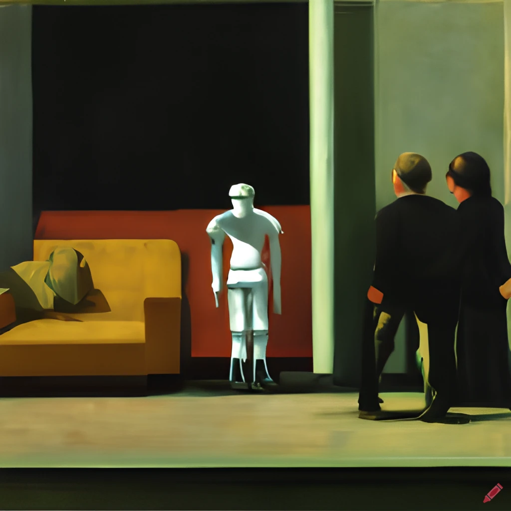 An Edward Hopper painting of a robot delivering your email to me, as envisioned by Craiyon.
